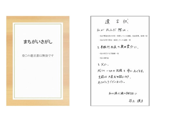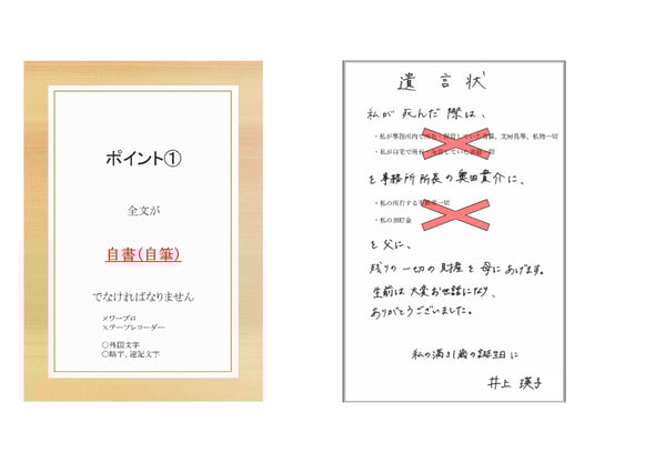 実はこの遺言書、2つ間違いがあり無効です。