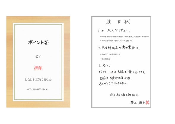 2つ目の間違いは、【署名の後ろに押印がないところ】になります。